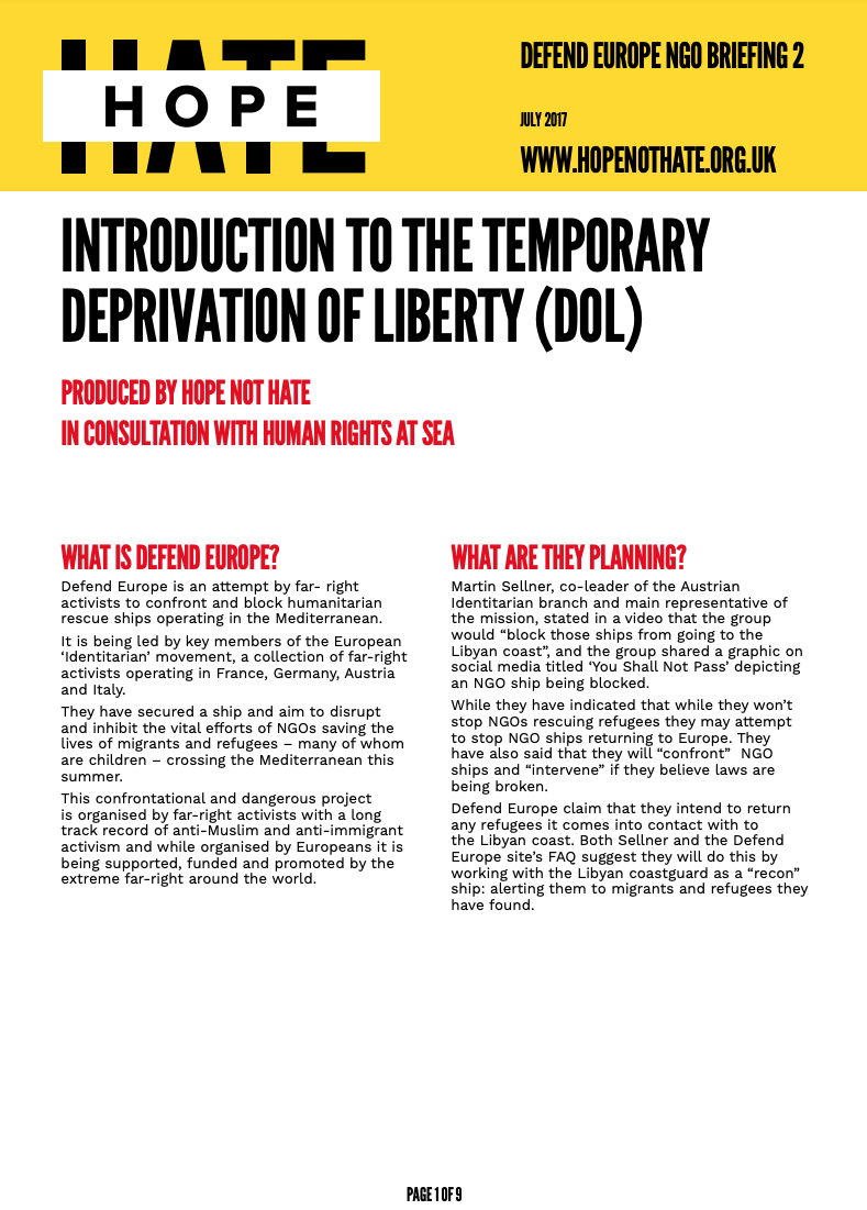 Hope Not Hate Defend Europe NGO Briefing 2 Deprivation of Liberty [16 July 2017]
