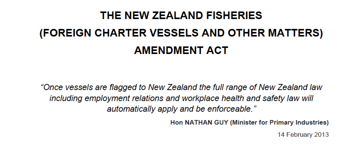 “Once vessels are flagged to New Zealand the full range of New Zealand law including employment relations and workplace health and safety law will automatically apply and be enforceable.”