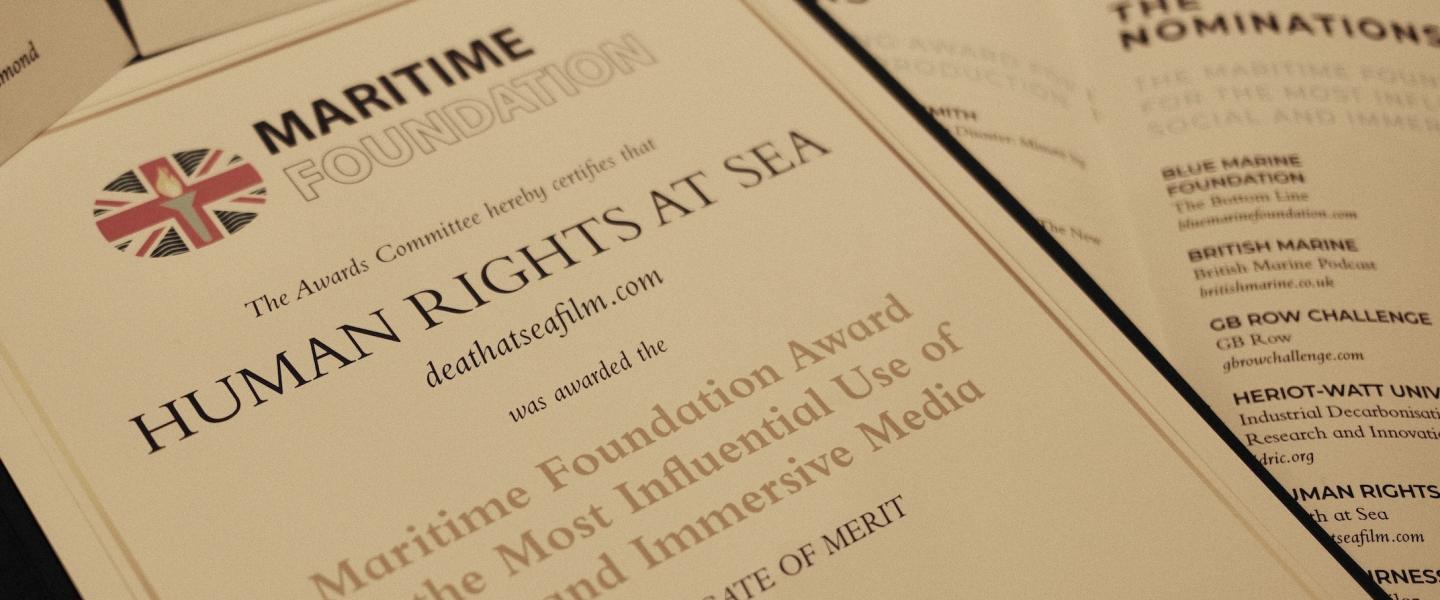 Human Rights at Sea was nominated alongside high-quality fellow nominees for ‘Most Influential Use of Social and Immersive Media’ for the campaign led by the film’s director and impact producer, Sara Pipernos.