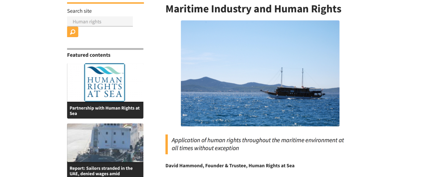 Maritime Industry and Human Rights Resource Page: https://business-humanrights.org/en/maritime-industry-and-human-rights