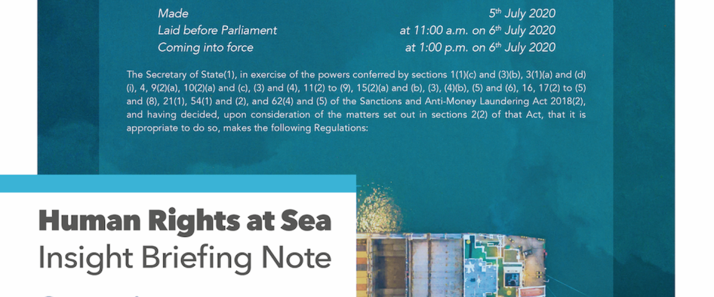 London. UK. Human Rights at Sea, in concert with the international law firm HFW LLP, today issues a new Insight Briefing Note concerning the July release by the UK Government of the Global Human Rights Sanctions Regulations 2020.