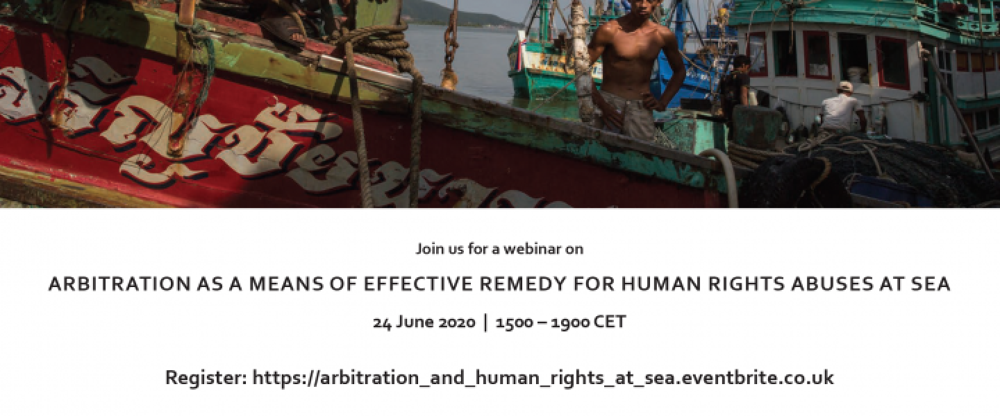 London. UK. Announcement. Arbitration as a Means of Effective Remedy for Human Rights Abuses at Sea Webinar – 24 June 2020 1500 – 1900 CET.