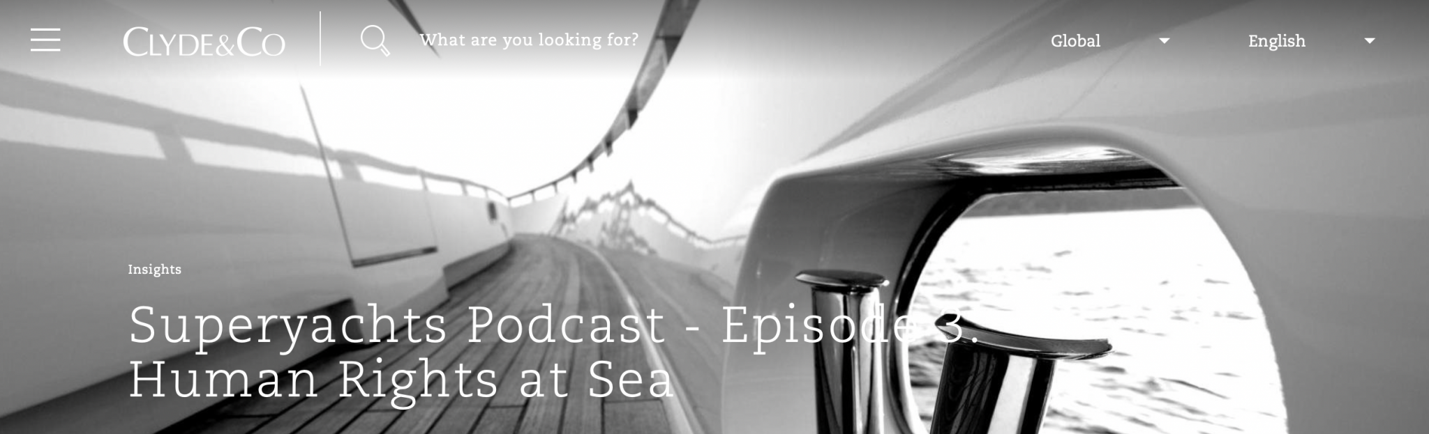 05 May 2021Clyde & Co Superyachts podcast on Human Rights at SeaPress Release 5 May 2021 London, UK. Human Rights at Sea Trustee Professor Steven Haines was invited to speak with host John Leonida for the third Clyde & Co Superyachts podcast on the subject ofAbout us
