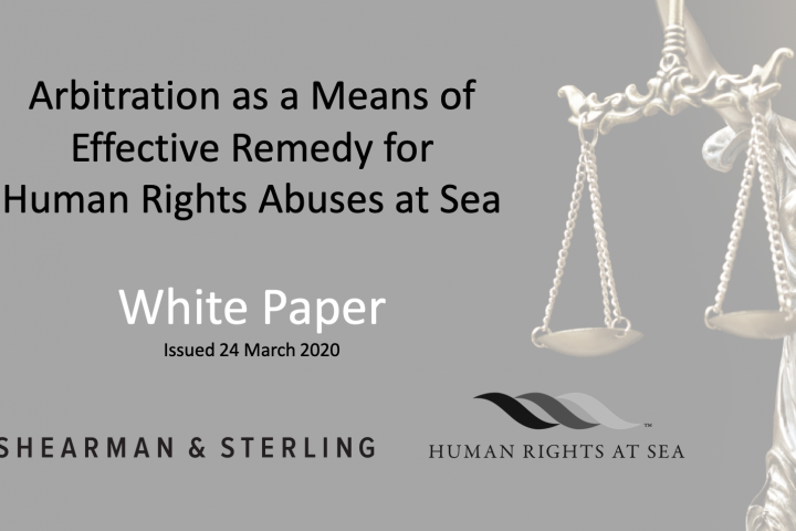 24 Mar 2020[Updated] White Paper Issued for Innovative Use of Arbitration and Human Rights on UN International DayPress Release 24 March 2020 Arbitration as a Means of Effective Remedy for Human Rights Abuses at Sea [Updated 10 May 2020 to include French Version and flow diagram now available to download] London, UK. Paris, France. On the UN International Day for the Right to The Truth Concerning Gross Human -