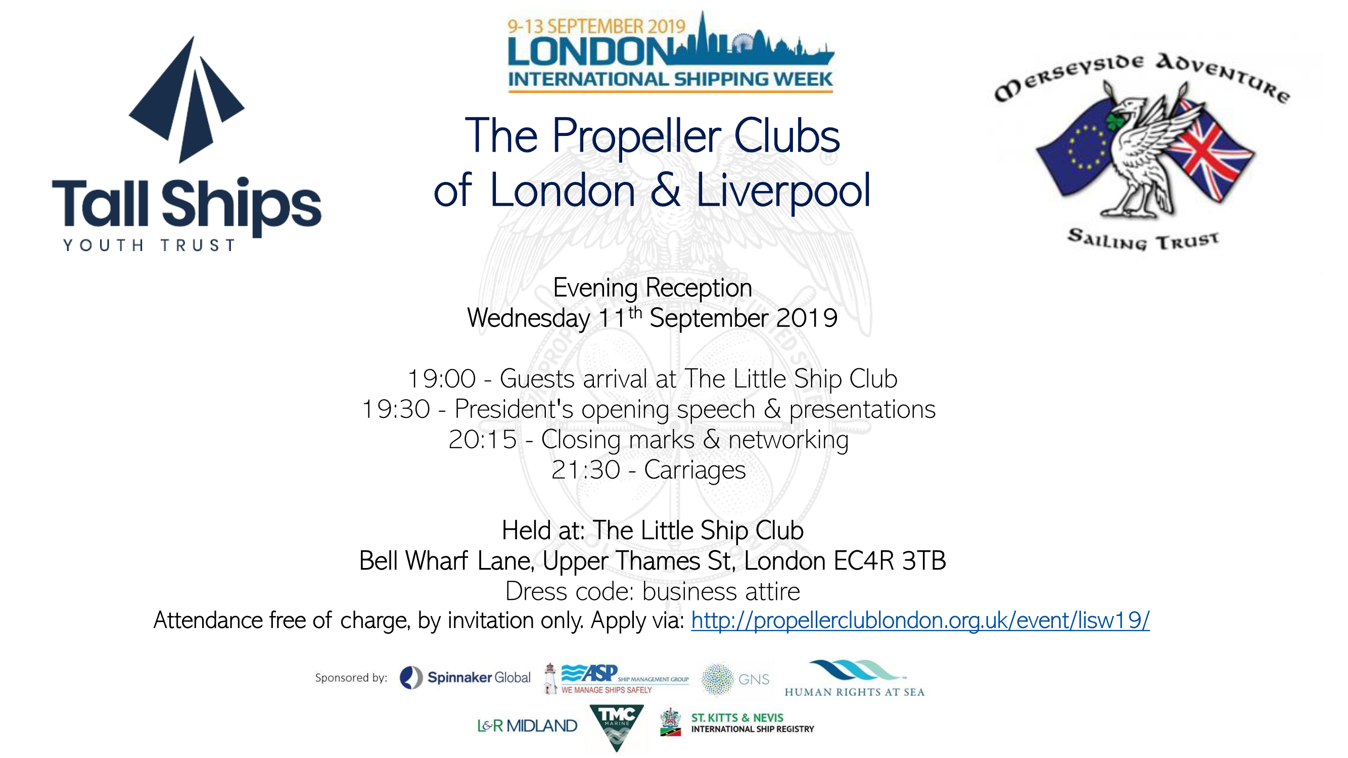 02 Sep 2019Human Rights at Sea sponsors LISW 2019 Propeller Club EventPress Release 2 September 2019 London. UK. As part of the forthcoming London International Shipping Week, Human Rights at Sea is pleased to announce its co-sponsorship alongside other key maritime organisations ASP Ship Management, GNS, Spinnaker Global, L & R Midland, TMC Marine and St Kitts & -