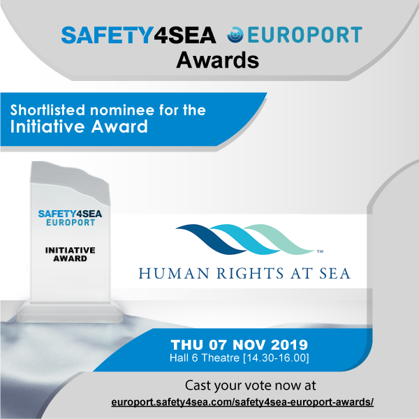 16 Jul 2019HRAS shortlisted for Safety4Sea Europort AwardsPress Release 16th July 2019 London.UK. Human Rights at Sea is pleased to share the news that it has been shortlisted for the 2019 Safety4Sea Europort Awards in the category of ‘Initiative Award’ for its work raising global awareness of human rights abuses at sea through a series of case studies -