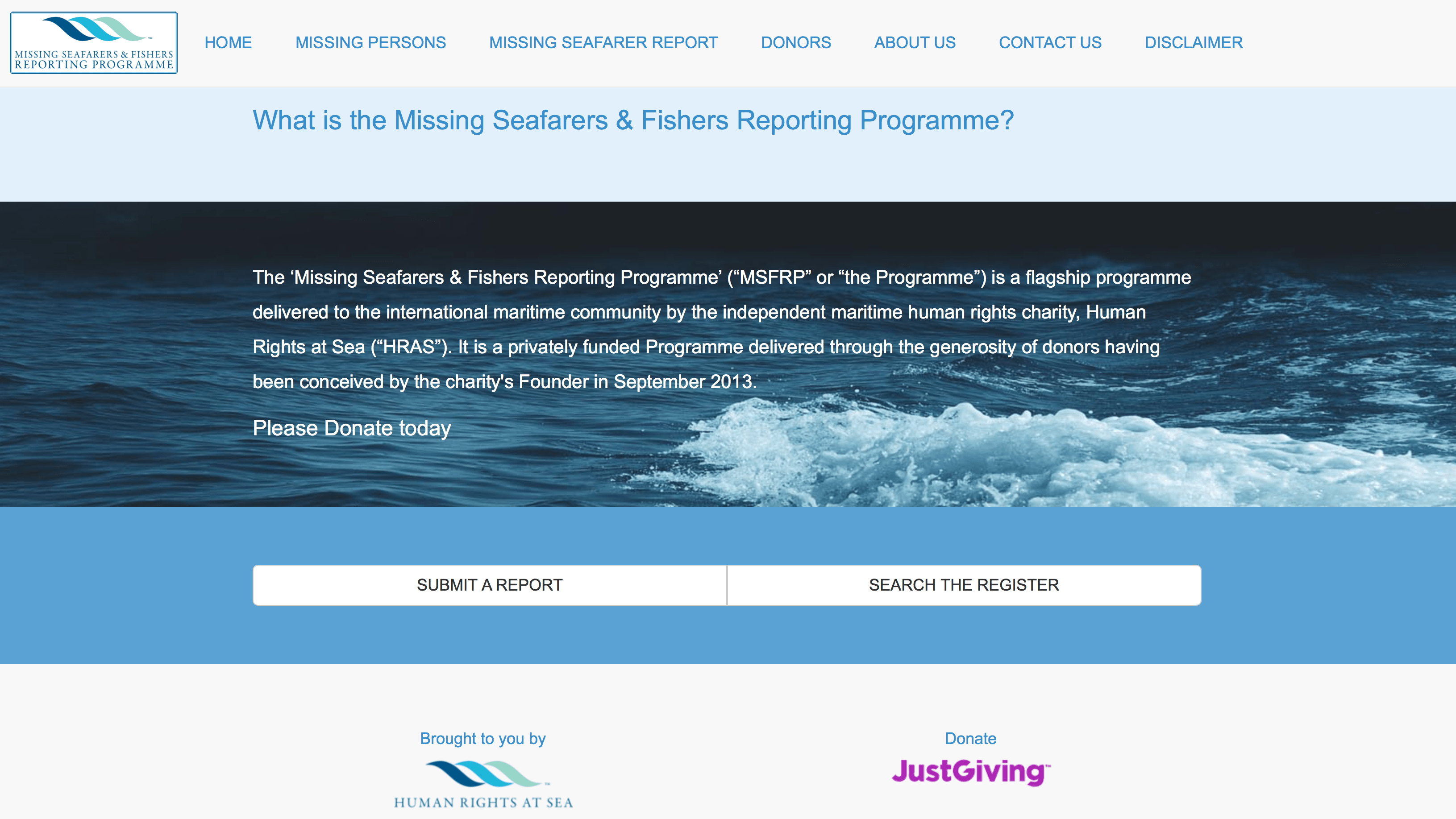 11 Nov 2018Missing Seafarers & Fishers Reporting Programme UpdatedUK. London. The flagship programme for the Human Rights at Sea charity, the Missing Seafarers and Fishers Reporting Programme, has been updated and the website refreshed to ensure easier and more efficient use. The charity has been running the Programme since 2015, during which time individual cases -