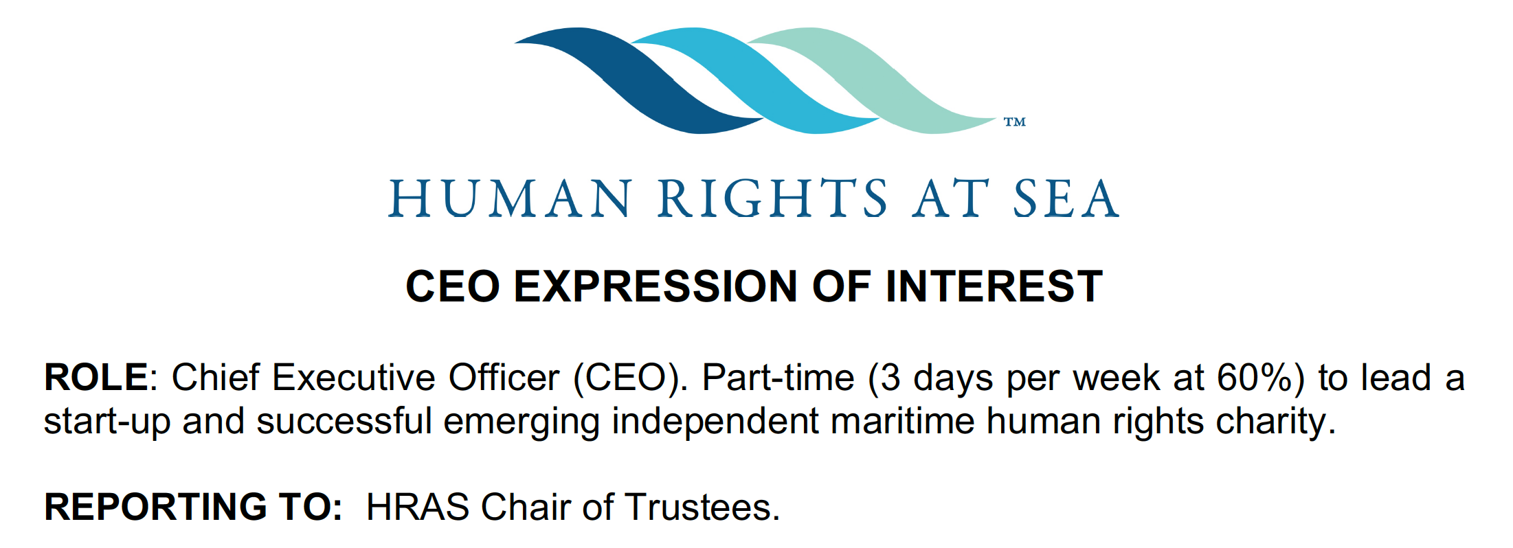 22 Feb 2018HRAS CEO Role: Expression of Interest publishedPRESS RELEASE 22 February 2018 AVAILABLE CEO POSITION UK. The Trustees of Human Rights at Sea have today published a Expression of Interest for the CEO position. The role is part-time (3 days per week -